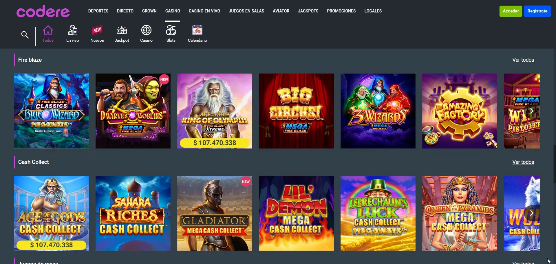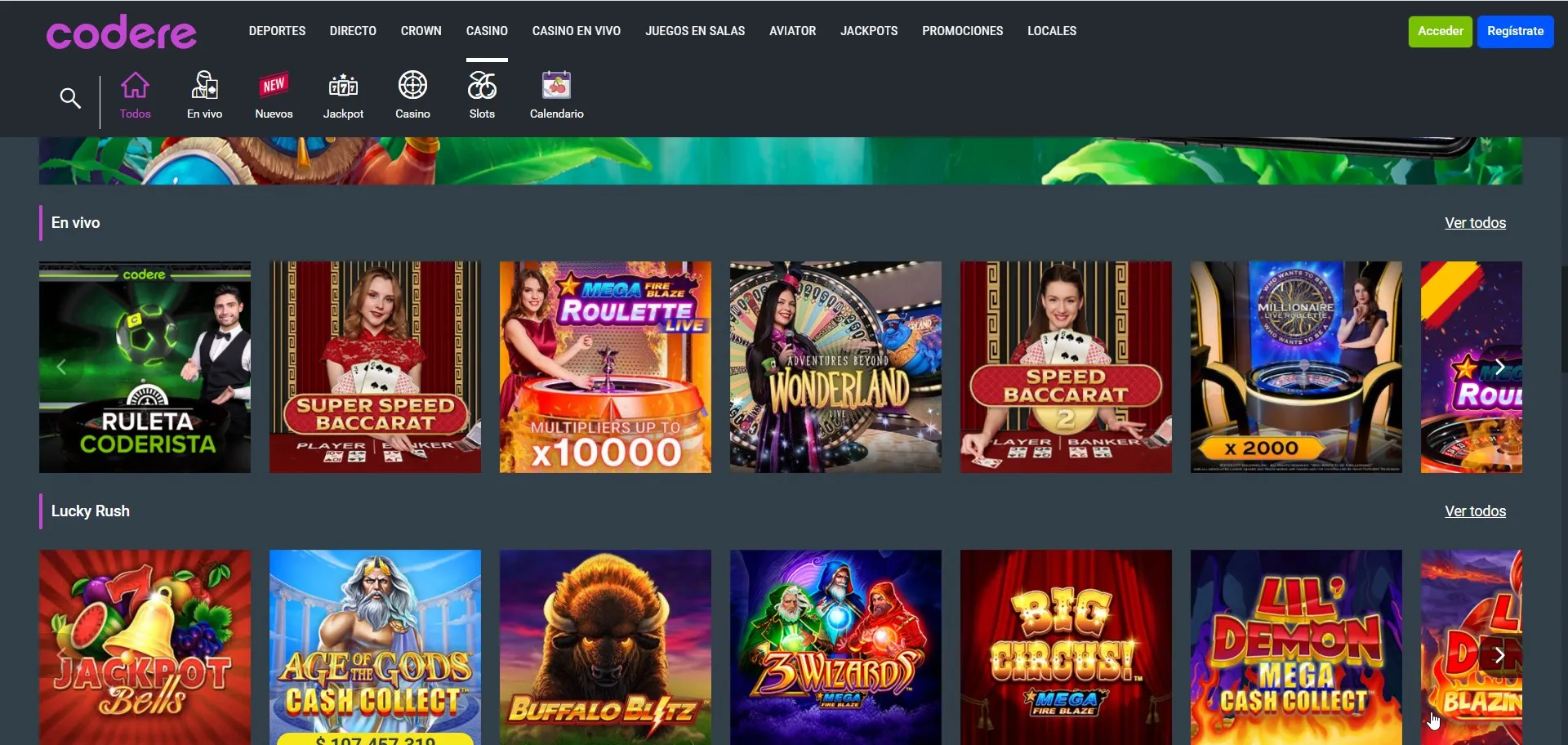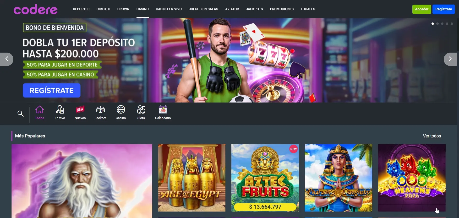 Codere oferece um portfólio com slots, jackpots, jogos de mesa e casino en vivo com crupiês reais, incluindo ruleta e blackjack em 2026. Nossa equipe compilou as listas públicas de jogos e verificou parcerias com provedores reconhecidos; a disponibilidade depende da licença local e das promoções aplicáveis por região.